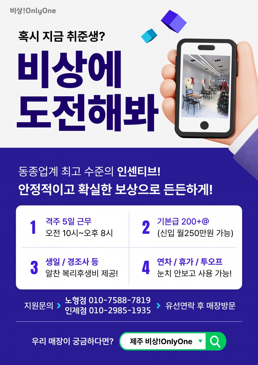 휴대폰매장⭐️월250~350만원⭐️직원구해요^^ 페이지 정보 작성자 일OO손 작성일26-01-23 16:31 조회75회 연락처 010-7588-7819 급여 월급 : 250만원 이상 관련링크 본문 - 주소 : 제주 제주시 월랑로 8길 1 이전글 다음글 목록