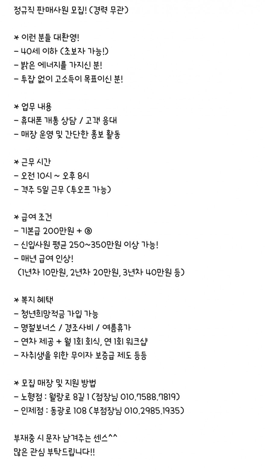 통신3사휴대폰⭐️비상!OnlyOne⭐️직원구함^^ 페이지 정보 작성자 아O라 작성일25-12-18 16:06 조회37회 연락처 010-7588-7819 급여 월급 : 250만원 이상 관련링크 본문 - 주소 : 제주 제주시 월랑로 8길 1 이전글 다음글 목록