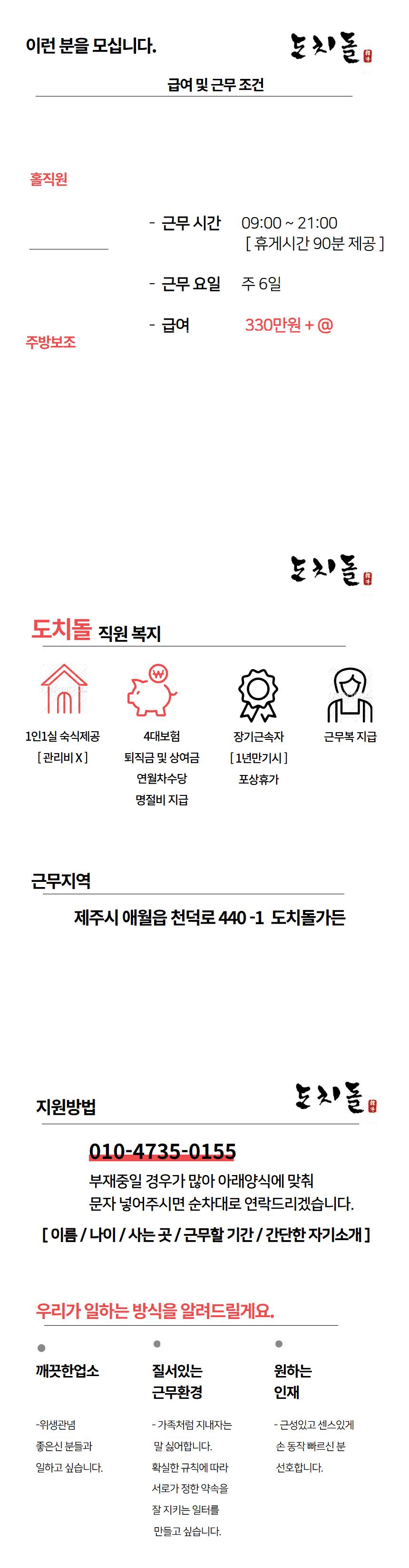 [1인1실/숙식제공]_식당_홀직원,_주방보조_모집 페이지 정보 작성자 gOOOOOOOOO8 작성일25-12-21 09:38 조회285회 연락처 010-4735-0155 급여 월급 : 330만원 관련링크 본문 . 주소 : 천덕로440-1 이전글 다음글 목록