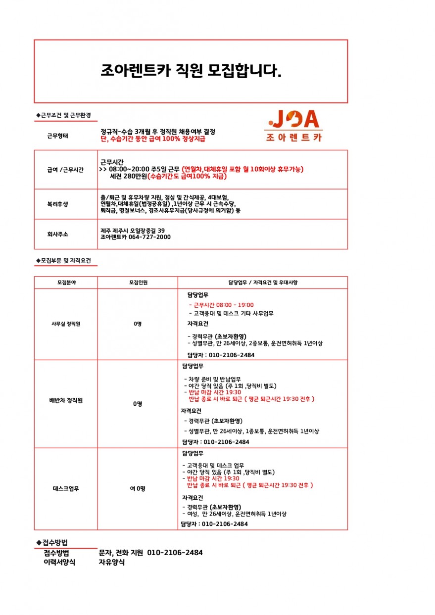 ❤️ᕕ( ᐛ )ᕗ조아렌트카 / 출퇴근 휴무 차량 지원❤️예약실 데스크 배차 페이지 정보 작성자 jOOOOOt 작성일25-12-09 12:31 조회59회 연락처 010-2106-2484 급여 월급 : 280만원 관련링크 본문 주소 : 제주특별자치도 제주시 오일장중길 39 조아렌트카 이전글 다음글 목록