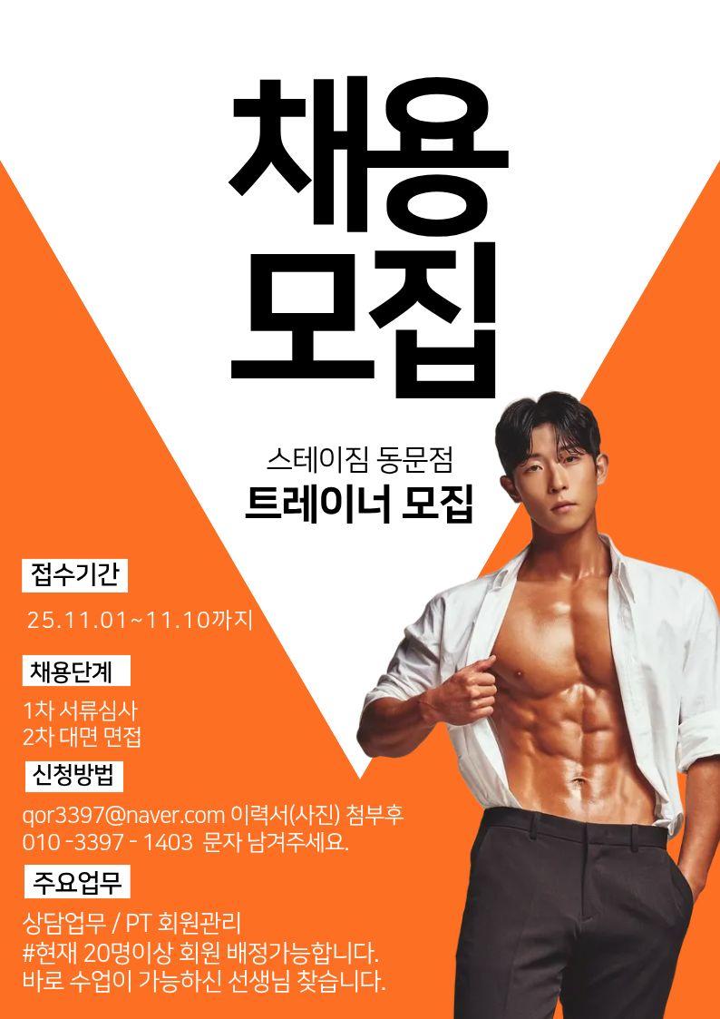 스테이짐 동문점 트레이너 구인 페이지 정보 작성자 스OO짐 작성일25-11-03 07:17 조회40회 연락처 010-3397-1403 급여 협의 : 3,000,000 이상 관련링크 본문 바로 수업이 가능하신 선생님 모집 합니다. 주소 : 제주특별자치도 제주시 동문로 80 3층 이전글 다음글 목록