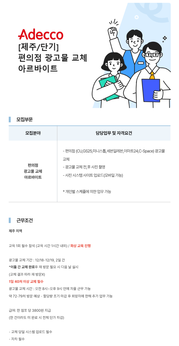 [2일27만/제주] 편의점 광고물 교체 장/단기 프리랜서 페이지 정보 작성자 편OOOOOO체 작성일25-12-09 09:21 조회280회 연락처 010-7733-2775 급여 협의 : 2일27만 관련링크 본문 010-7733-2775로 양식에 맞추어 지원해주세요.[제주/성함/연락처/주소지]잔여구역: 제주시내, 한경한림 주소 : 제주특별자치도 서귀포시 중앙로 105 서귀포시청 이전글 다음글 목록