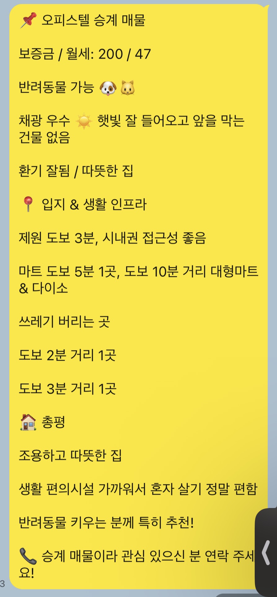 오피스텔 | 오_피_스_텔_반_려_동_물_가_능 페이지 정보 작성자 TOOg 작성일26-01-14 12:43 조회34회 연락처 010-2294-6792 관련링크 본문 01022946792 주소 : 연동10길16 디오션시티2차 다음글 목록