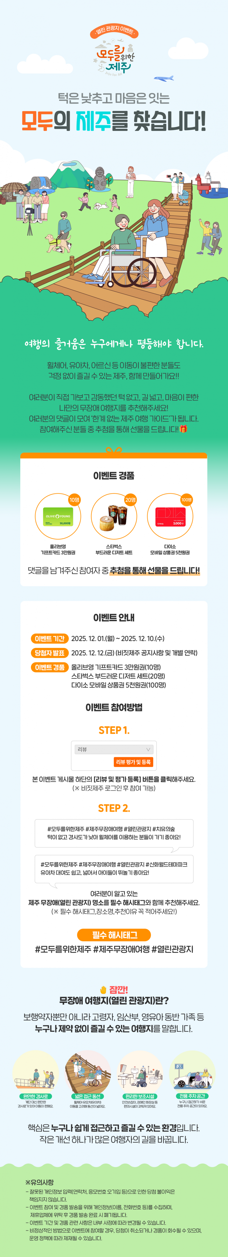 휠체어, 유아차, 어르신 등 이동이 불편한 분들도 걱정 없이 즐길 수 있는 제주, 함께 만들어가요!
